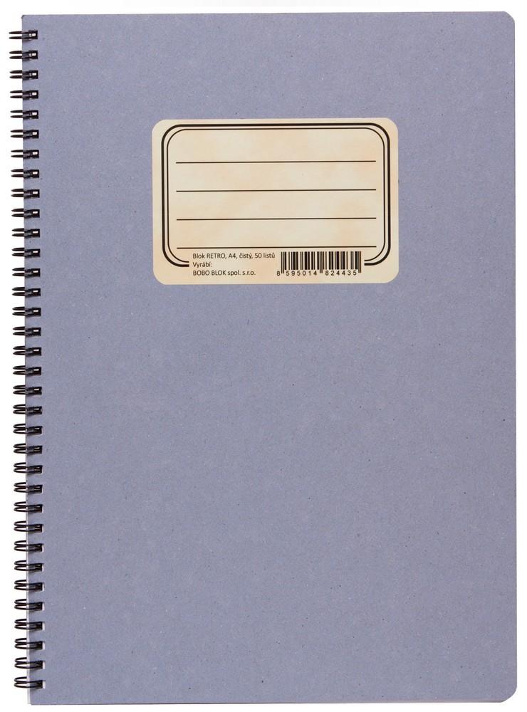 - Blok kroužkový s boční spirálou RETRO A4 čistý, 50 listů
