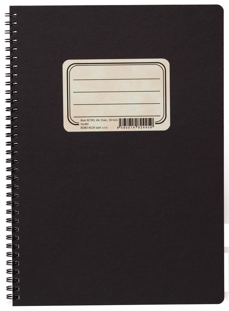 - Blok kroužkový s boční spirálou RETRO A4 čtverečkovaný, 50 listů