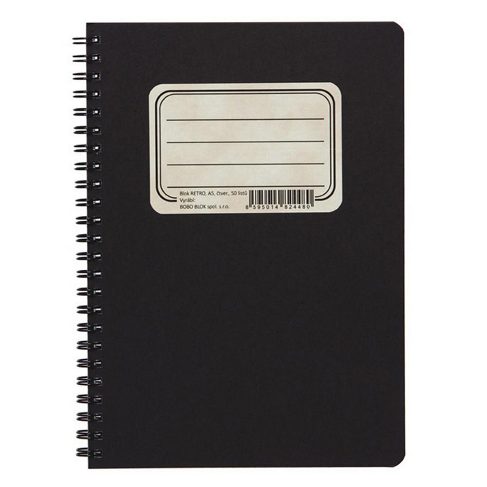 • Blok kroužkový s boční spirálou RETRO A6 čtverečkovaný, 50 listů