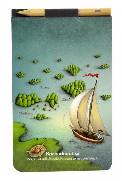 - Blok poznámkový s tužkou a magnetem lepený 150x90mm Duhová kočka - Rozhodnout se