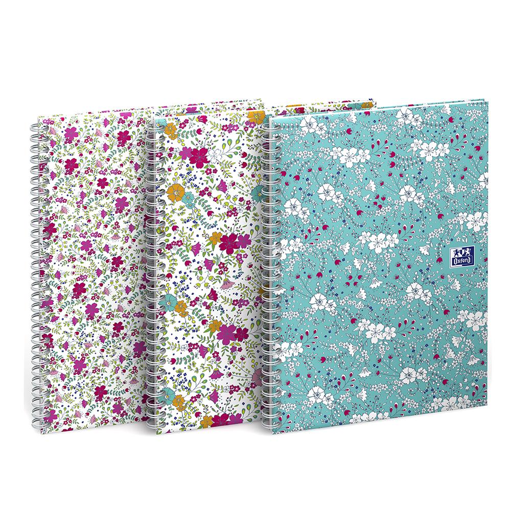 Blok s boční kroužkovou spirálou Oxford Floral B5, linkovaný, 60 listů, mix barev