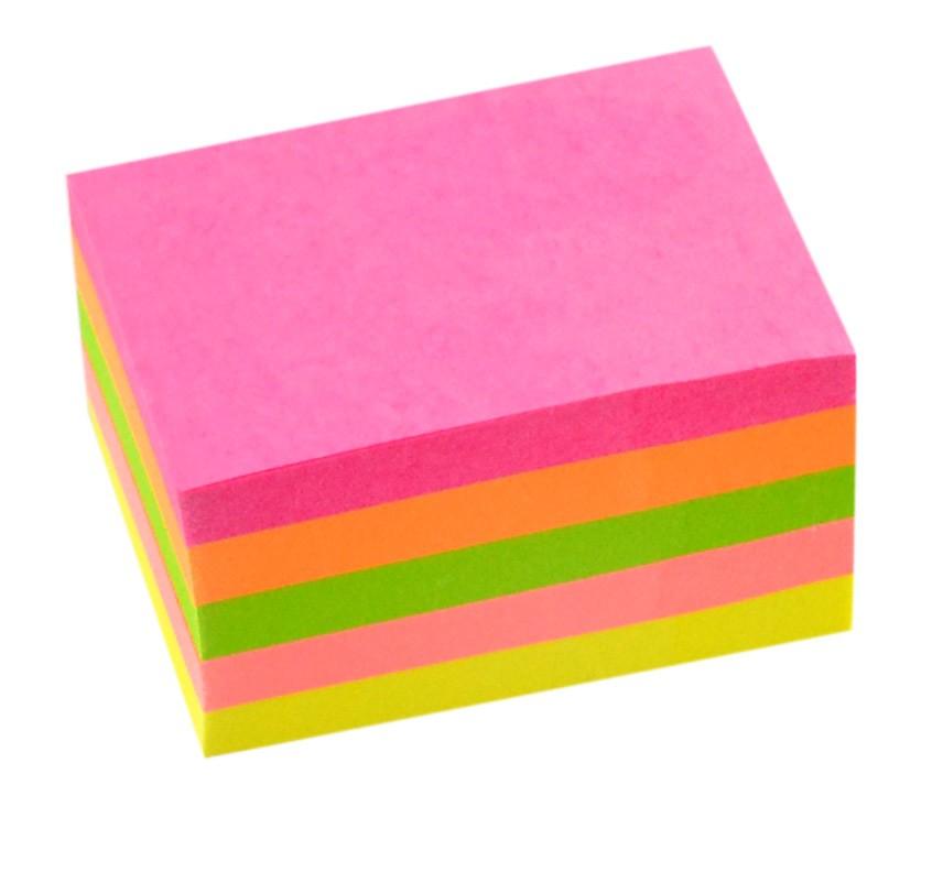 Neonový samolepicí bloček - kostka v 5 barvách Ideální pro zanechání vzkazů, instrukcí a připomínek Nezanechávají stopy, mohou být použity a aplikovány opakovaně Díky speciálnímu lepidlu se bloček po přilepení téměř nekroutí Balení: 5 x 60 lístků Rozměr: 51 x 38 mm