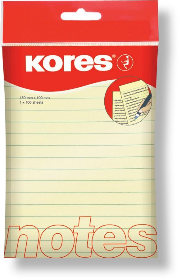 Blok samolepicí Kores žlutý 150 x 100 mm linka/100 listů
