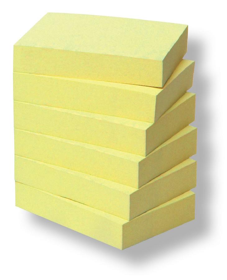 Kvalitní značkové Post-it samolepicí bločky žluté barvy Pro opakované použití Dokonalá přilnavost Nekroutí se Balení: 6 ks bločků v každém 100 lístků Rozměr: 51 x 38 mm