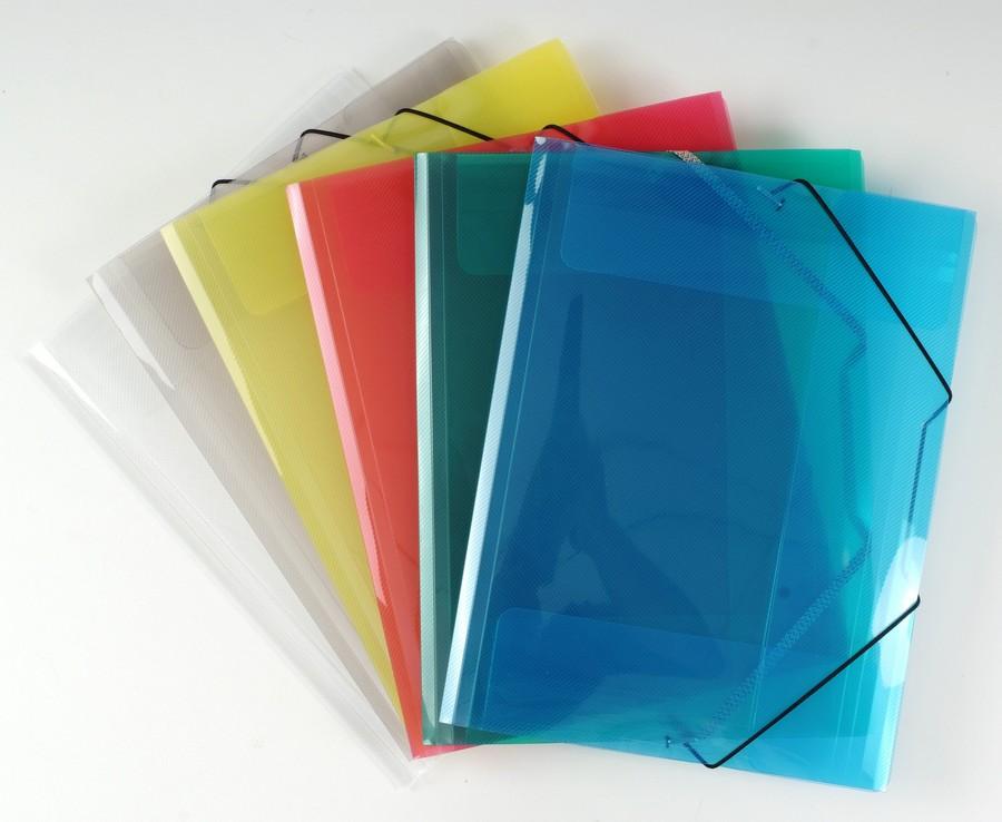 Spisové desky vyrobené z transparentního polypropylenu se 3 klopami a se zavíráním na gumičku