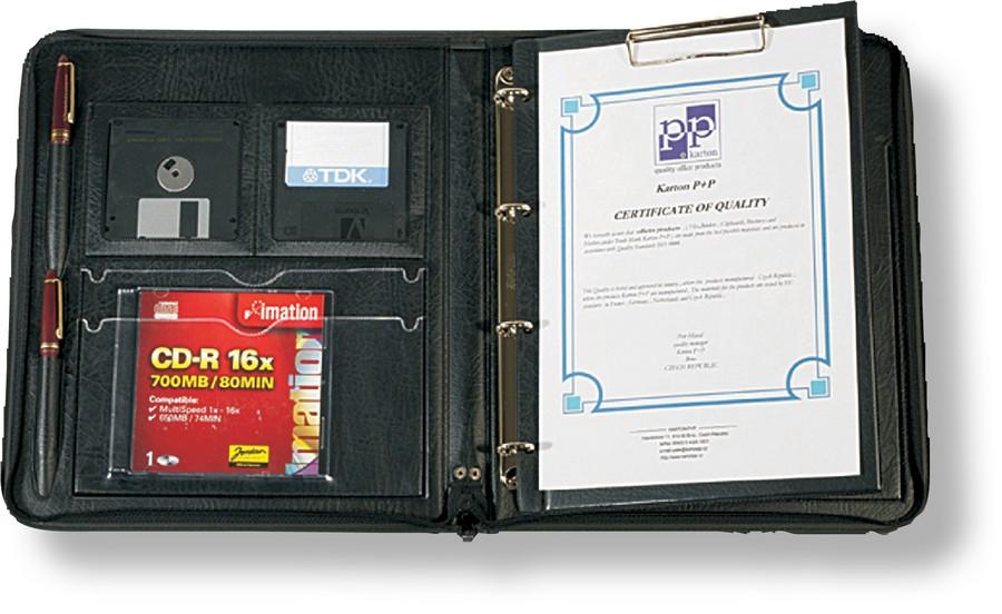 Diplomatka A4 se zavíráním na zip v provedení kůže matná Vybavení: klip na upevnění bloku, čtyřkroužková mechanika, kapsičky na tužky, vizitky, CD Barva: černá a hnědá Prodejní jednotka 1 ks