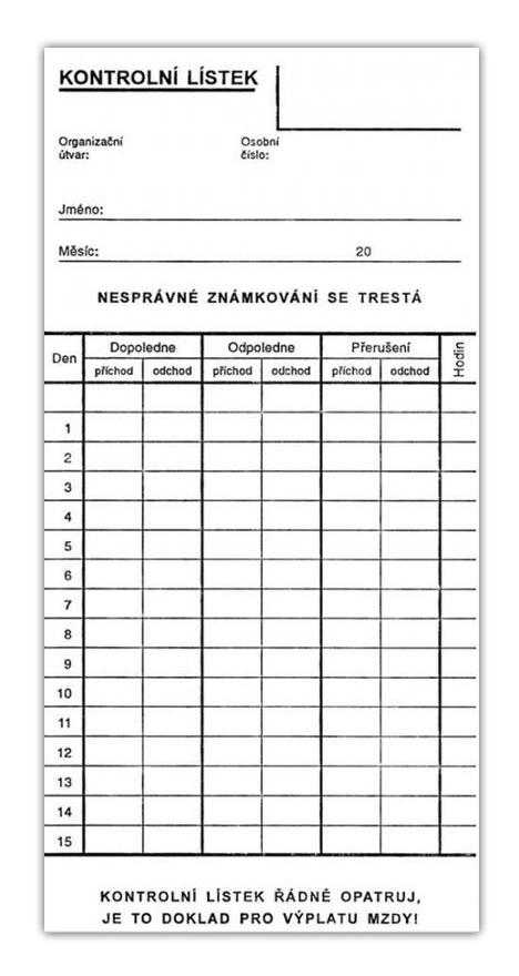 - Docházkový lístek - píchačka 90 x 190 mm2 Kč/ ks1 Kč bez DPH