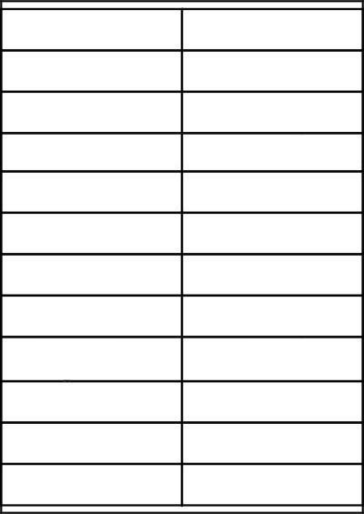 Samolepicí etikety na arších pro použití v laserových a inkoustových tiskárnách Rozměr: 105 x 24 mm Počet etiket na archu: 24 Obsah balení: 100 archů