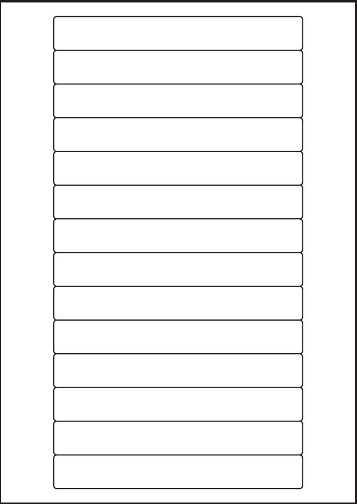 Samolepicí etikety na arších pro použití v laserových a inkoustových tiskárnách Rozměr: 147 x 20 mm Počet etiket na archu: 14 Obsah balení: 100 archů