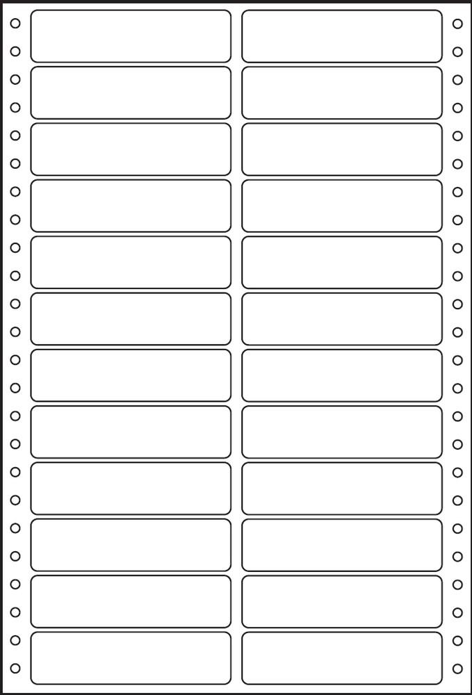 Počítačové samolepící etikety umístěné na "nekonečném" pásu skládaných listů (tzv. skladů) Jsou opatřeny postranní vodící perforací Určeny především pro potisk v mechanických počítačových tiskárnách Jsou dodávány standardně v bílé barvě Rozměr: 89 x 23,4mm