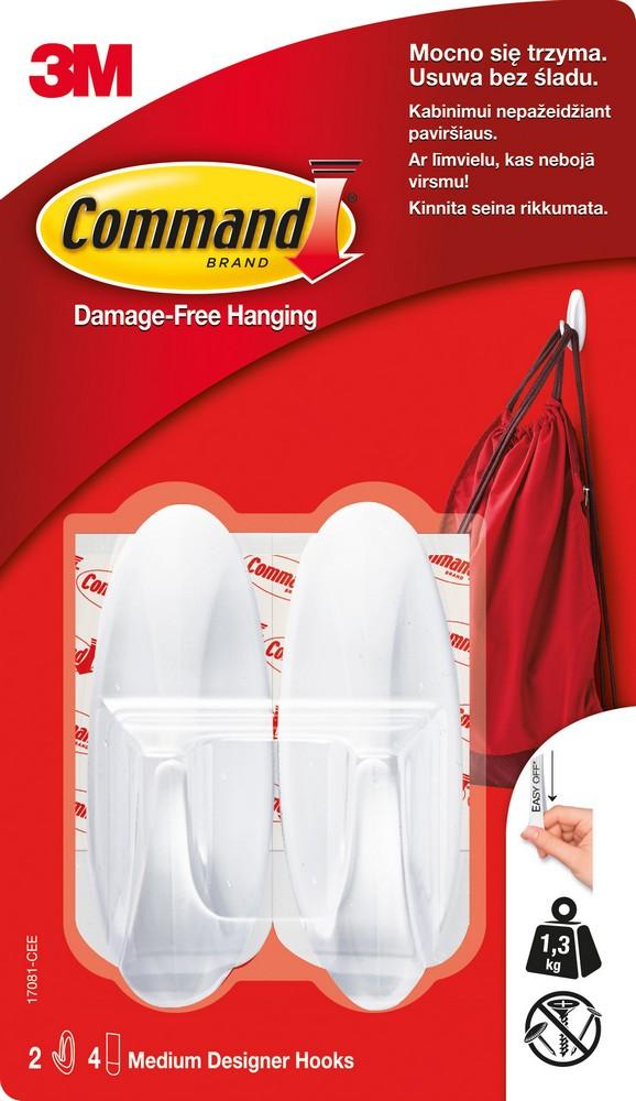 Samolepicí střední oválné háčky na středně těžké předměty na různé povrchy Snadná montáž, opakované použití bez poškození povrchu V balení 2 háčky, 4 lepicí proužky Nosnost do 1,36 kg Barva: bílá Prodejní jednotka 1 ks