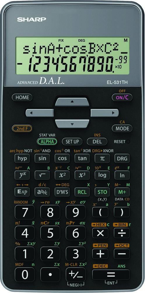 Vědecký kalkulátor EL-531TH obsahuje 273 matematických funkcí a je vhodný zejména pro studenty středních škol. Přehledný 2řádkový displej umožňuje procházení a editaci předchozích výpočtů, pevný plastový kryt chrání kalkulátor před poškrábáním a pády.