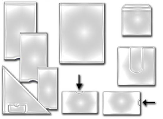 Samolepící kapsy na pořadače, spisovky a jiné, k zakládání vizitek, CD, štítků... Průhledné hladké PVC tloušťky 120 mic Balení obsahuje: 6 ks