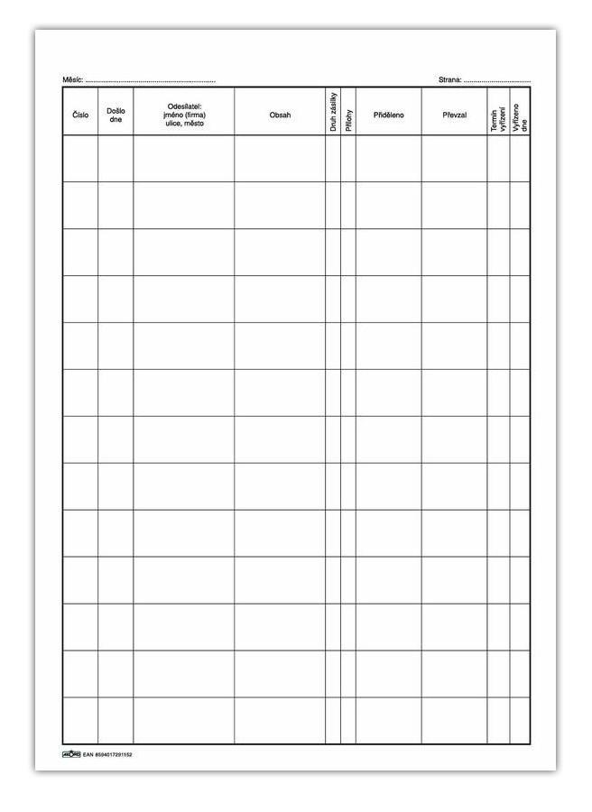 - Kniha došlé pošty A4, 20 L41 Kč/ ks34 Kč bez DPH