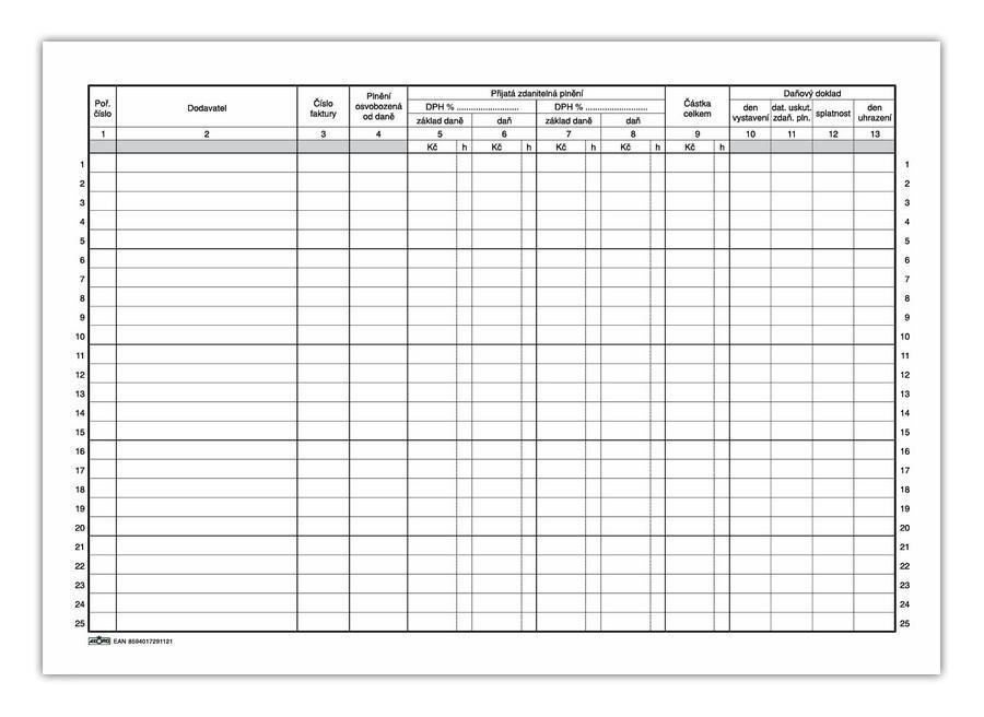 - Kniha došlých faktur A4, pro plátce DPH, 20 L46 Kč/ ks38 Kč bez DPH