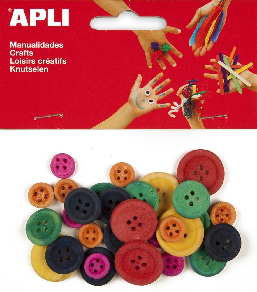 - Knoflíky dřevěné APLI barevný mix průměr 11, 18 a 21 mm/30 ks75 Kč/ bal.62 Kč bez DPH