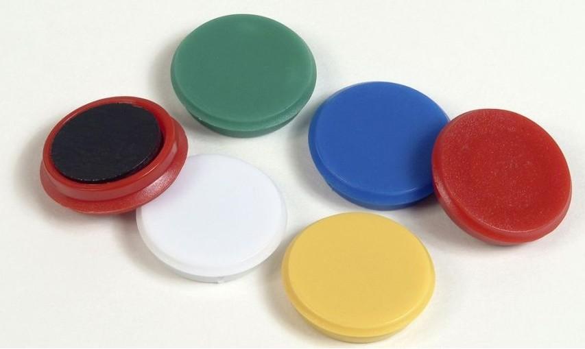 Barevné magnety na nástěnky a tabule Průměr 24 mm Balení obsahuje 10 ks v mixu barev Prodejní jednotka 1 ks