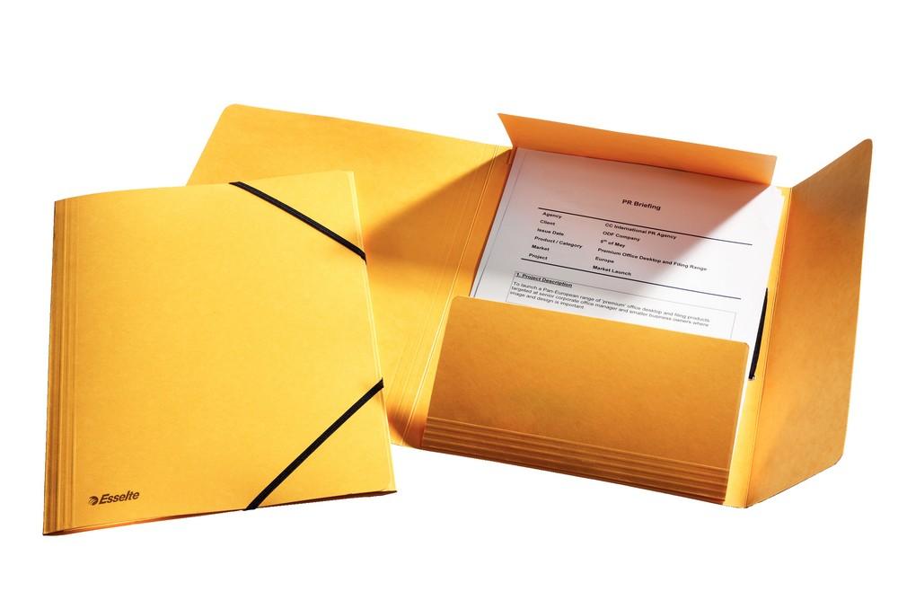 Mapa odkládací se 3 klopami prešpán s gumičkou Esselte žlutá