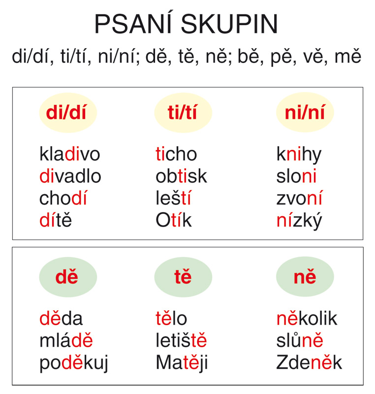 - Nástěnná tabule psaní skupin di/ti/ni/dě/tě/ně... Alter