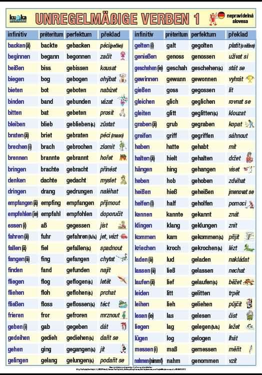 Nástěnný obraz pro výuku německých nepravidelných sloves Unregelmäßige Verben (1. část)