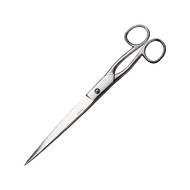 Celokovové nůžky RON vyrobené z velmi kvalitního kovu Řezné plochy jsou speciálně uzpůsobené pro precizní střih Ideální jsou pro použití na papír Nůžky si poradí také s jinými materiály Čepele spojuje odolný kovový šroub a špičky nůžek jsou ostré Barevné provedení: stříbrné Délka: 25 cm