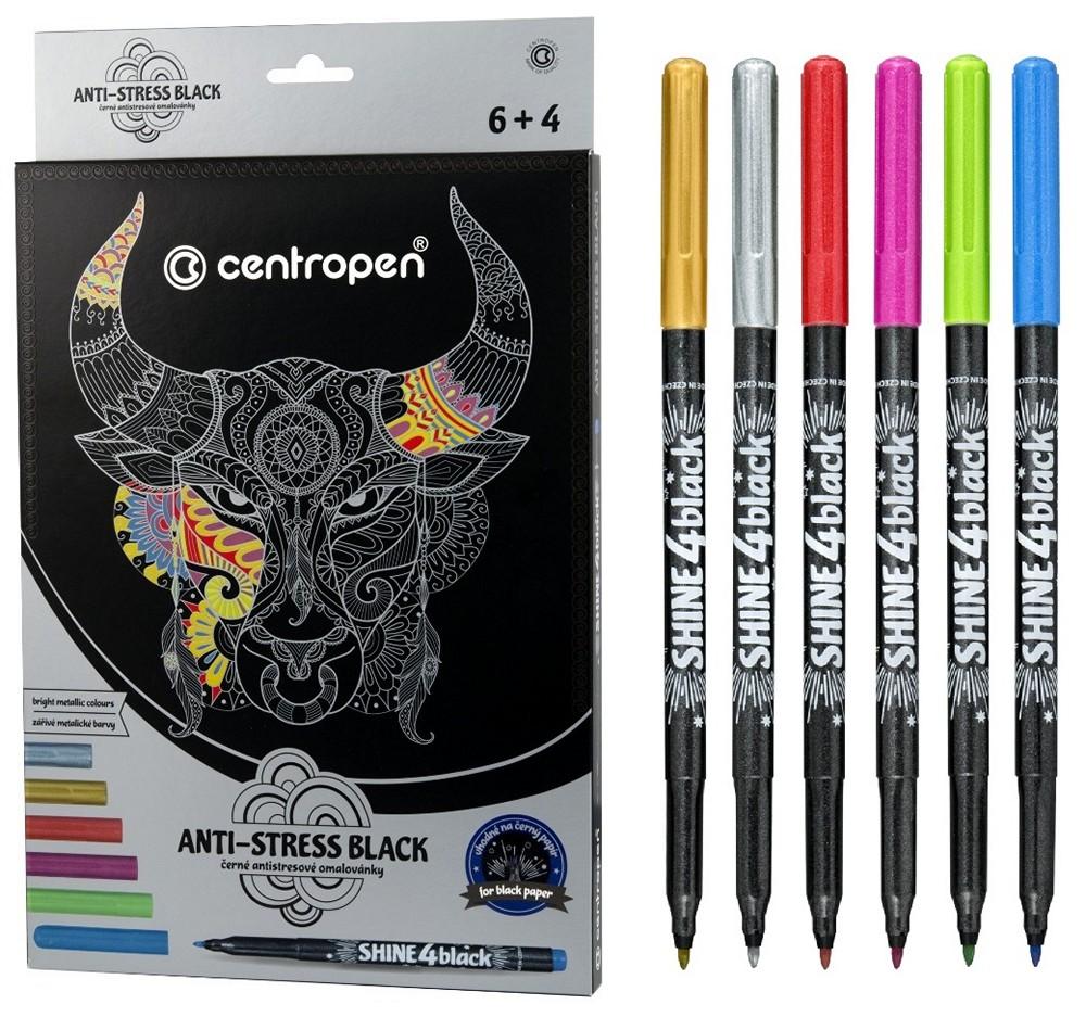 - Omalovánky černé 9390 SHINE set 6 popisovačů+4 předlohy (antistres)