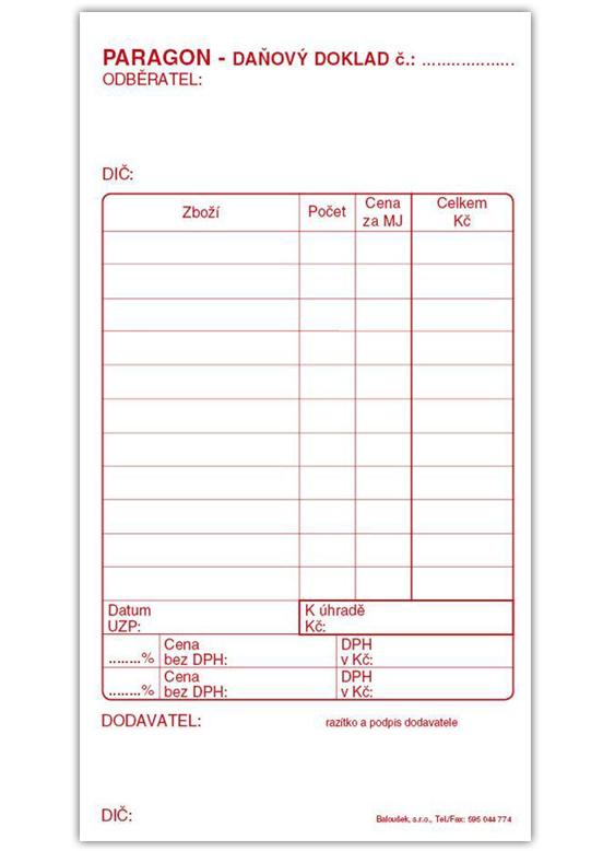 - Paragon - daňový doklad eko25 Kč/ ks20 Kč bez DPH