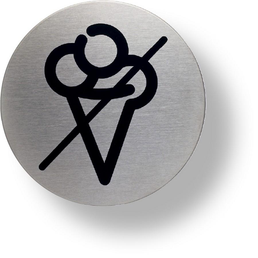 Kruhové piktogramy z kvalitní ušlechtilé oceli o průměru 83 mm a s vysoce trvanlivým černým potiskem Jsou opatřeny samolepicí páskou k upevnění na nejrůznější povrchy Prodejní jednotka 1 ks