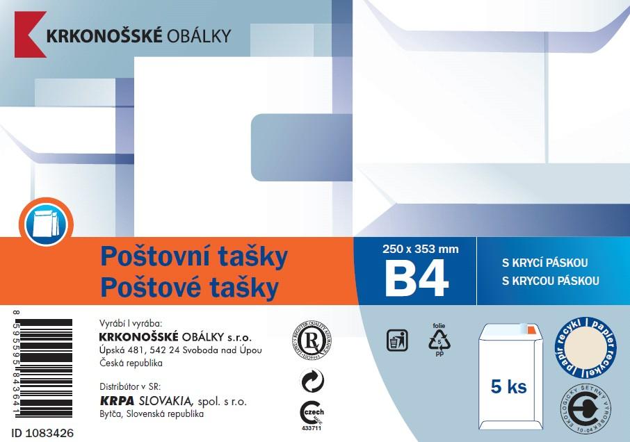 - Poštovní taška B4 bílá rec. samolepicí s KP, 250 x 353, 5 ks42 Kč/ bal.35 Kč bez DPH