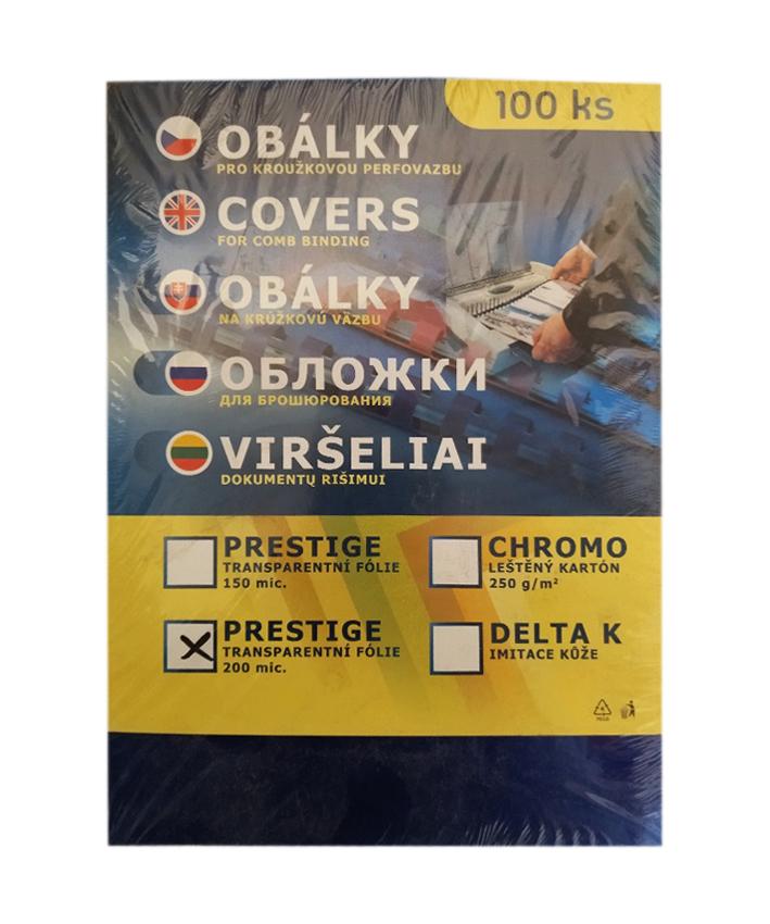 - Přední strana - transparentní /100ks modrá A4/200 mic.517 Kč/ bal.427 Kč bez DPH