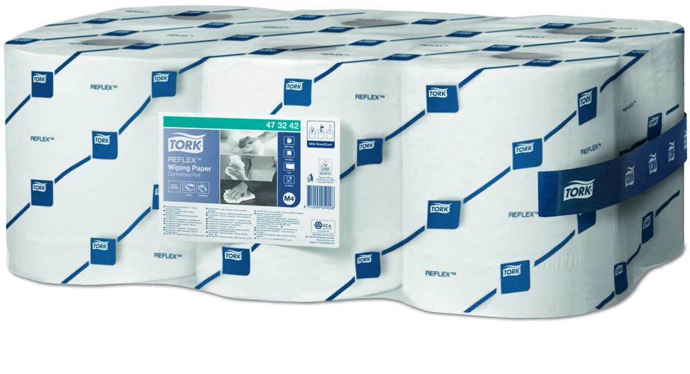 1 vrstvá víceúčelová Tork Reflex™ papírová utěrka je díky své pevnosti a vysoké absorpci ideální pro úkoly v oblasti utírání i pro utírání rukou Návin 300 m, 6 rolí Prodejní jednotka 1 karton