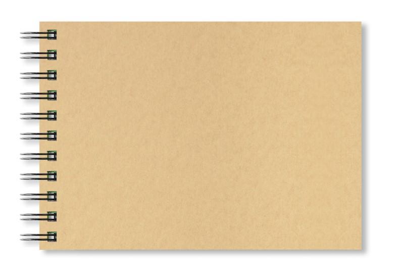 Vysoce odolné přírodní desky (kraft papír) Bez log/značek pro vlastní originální design přebalu 40 bílých listů 150 g/m2 Ideální pro suché techniky Dvojitá drátěná spirála Certifikace FSC