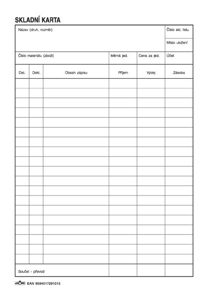 - Skladní karta zásob A5 na výšku, oboustranná2 Kč/ ks1 Kč bez DPH
