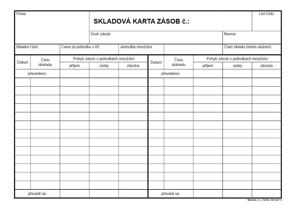 - Skladová karta zásob A5 (oboustranná) eko43 Kč/ ks36 Kč bez DPH