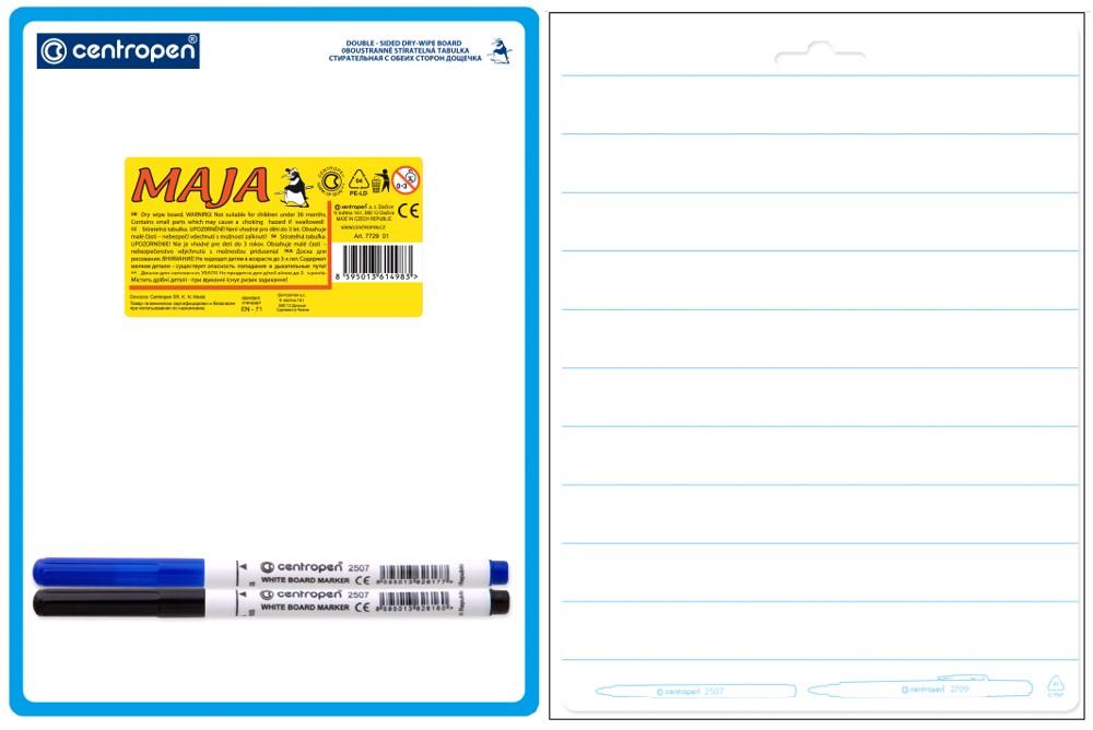 Oboustranně stíratelná tabulka 24 x 18 cm S potiskem linek K nácviku psaní, ale i kreslení 2 značkovače art. 2507