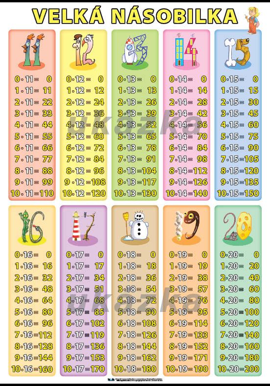 Nástěnný obraz pro výuku násobilky na základních školách i k domácímu využití.