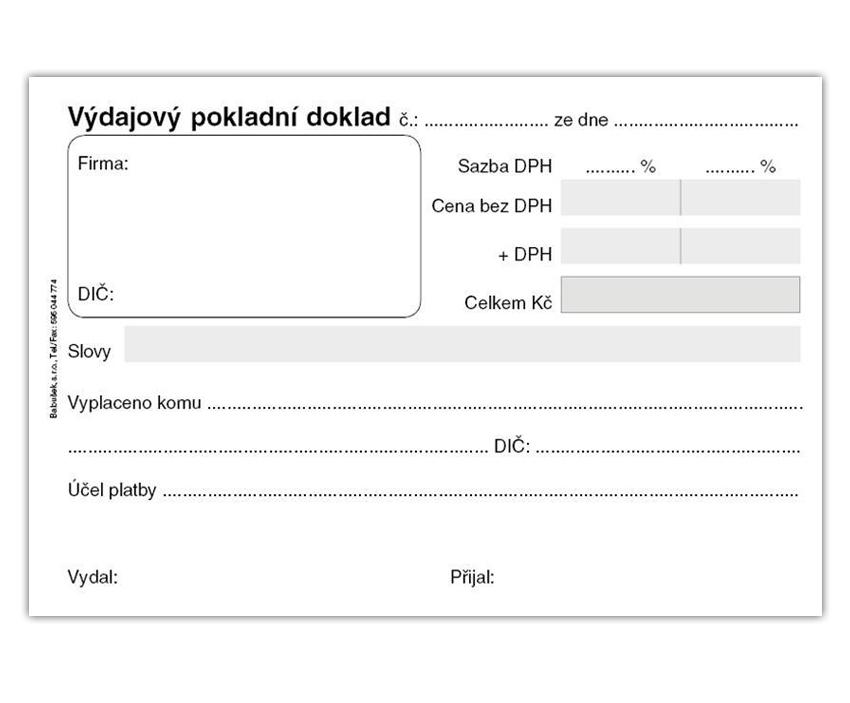 - Výdajový pokladní doklad A6 přímopropis.38 Kč/ ks31 Kč bez DPH