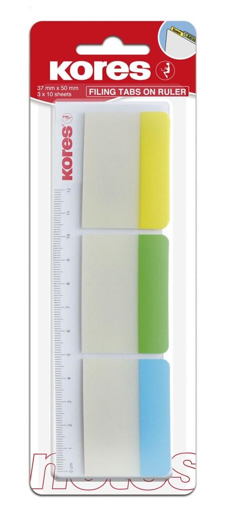 Záložky samolepicí Kores 50x37 mm/3X10ks na pravítku