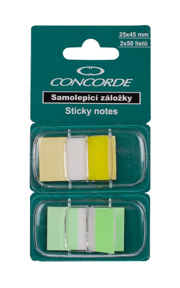 Záložky samolepicí plastové 25 x 45 mm/2 x 50 ks, žluté-zelené
