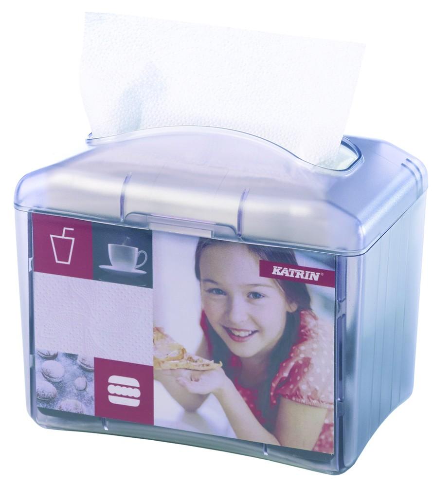 Zásobník na skládané ubrousky Katrin Resta Dávkování po 1 ubrousku Rozměr: 168 x 193 x 120 mm Prodejní jednotka 1 ks