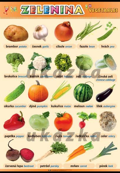 Názorné fotografie určené pro první seznamování se s jednotlivými druhy zeleniny.