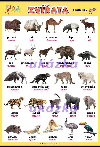 Názorné fotografie exotických zvířat určené pro další seznamování se s přírodou.