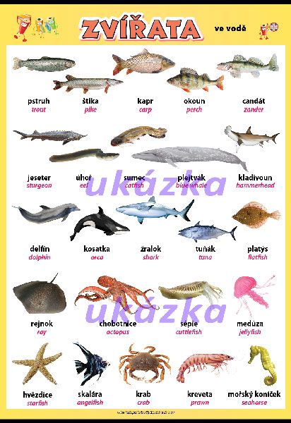 Názorné fotografie zvířat ve vodě určené pro seznamování se s přírodou.