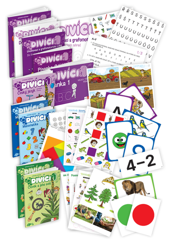 - Divíci 1 - rozšířený učitelský balíček - Český jazyk GEN (nevázané písmo) + Matematika + Člověk a jeho svět