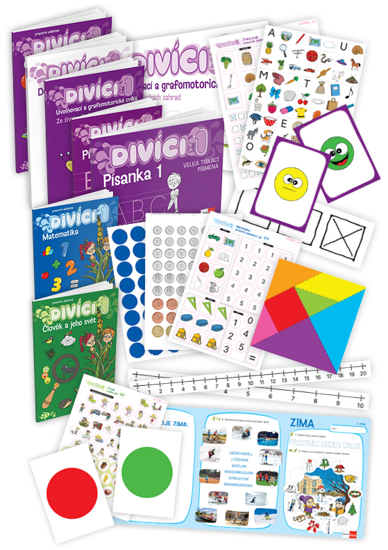 - Divíci 1 - rozšířený žákovský balíček - Český jazyk GEN (nevázané písmo) + Matematika + Člověk a jeho svět