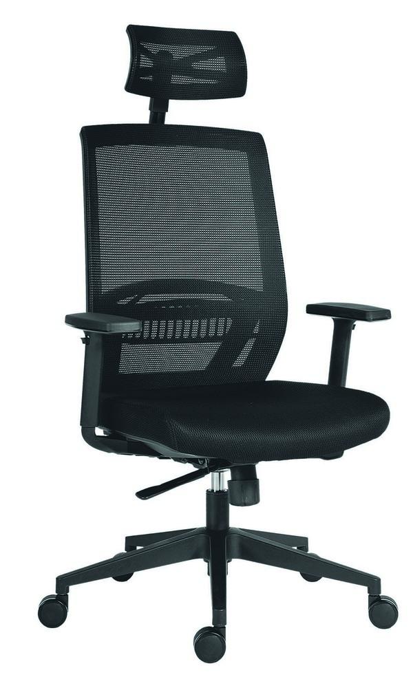 - Moderně designovaná kancelářská židle se síťovinou na opěradle a opěrce hlavy