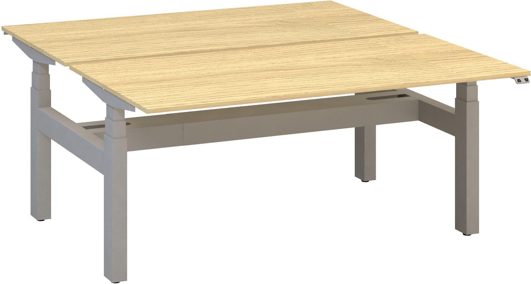 Kancelářský psací stůl ALFA UP výškově stavitelný, duotable, 1600 mm, dub vicenza / šedá