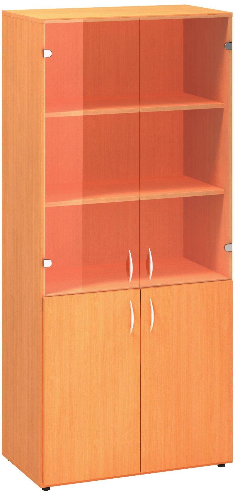 Policová skříň ALFA 500 5M (2M dveře / 3M dveře sklo), buk bavaria