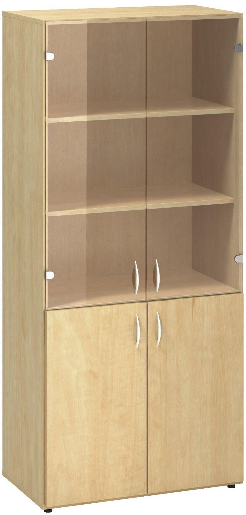 Policová skříň ALFA 500 5M (2M dveře / 3M dveře sklo), divoká hruška