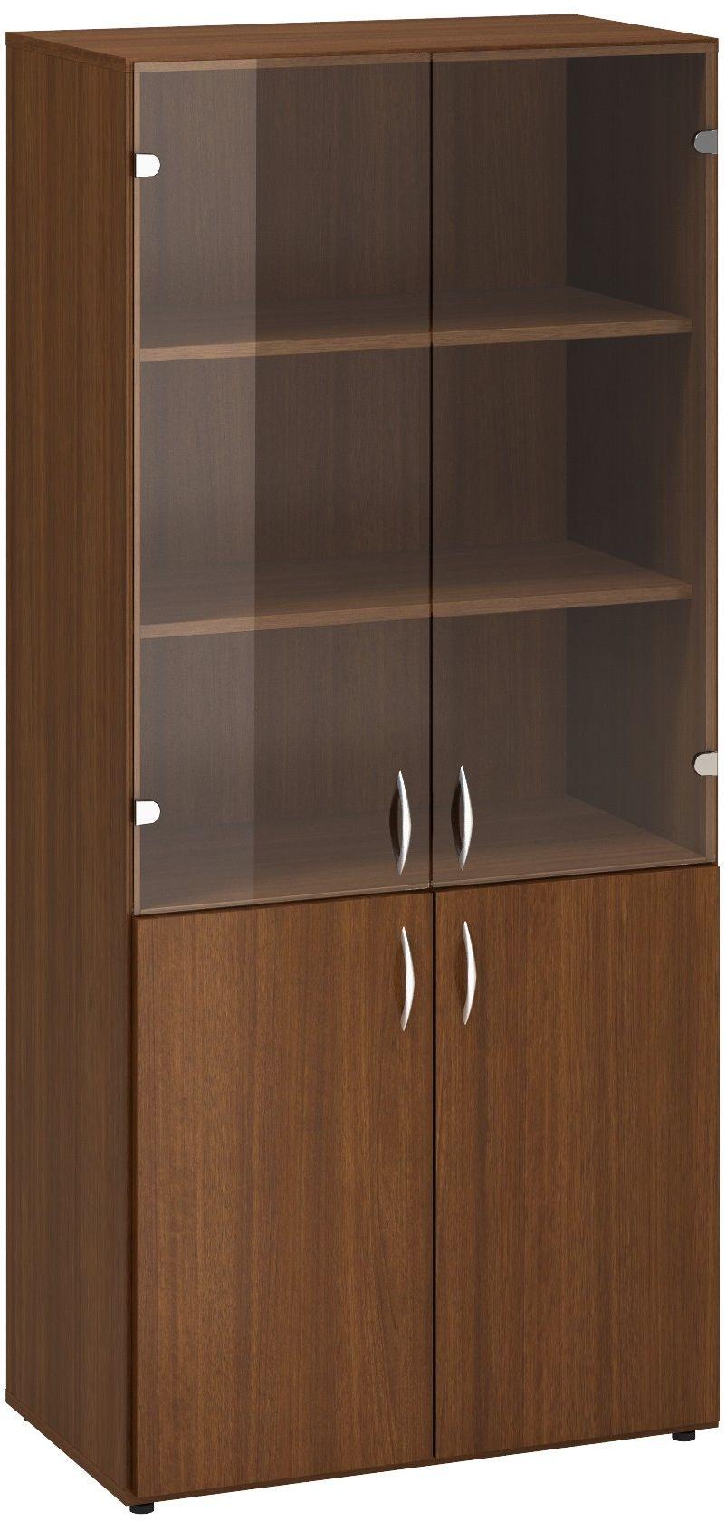 Policová skříň ALFA 500 5M (2M dveře / 3M dveře sklo), ořech